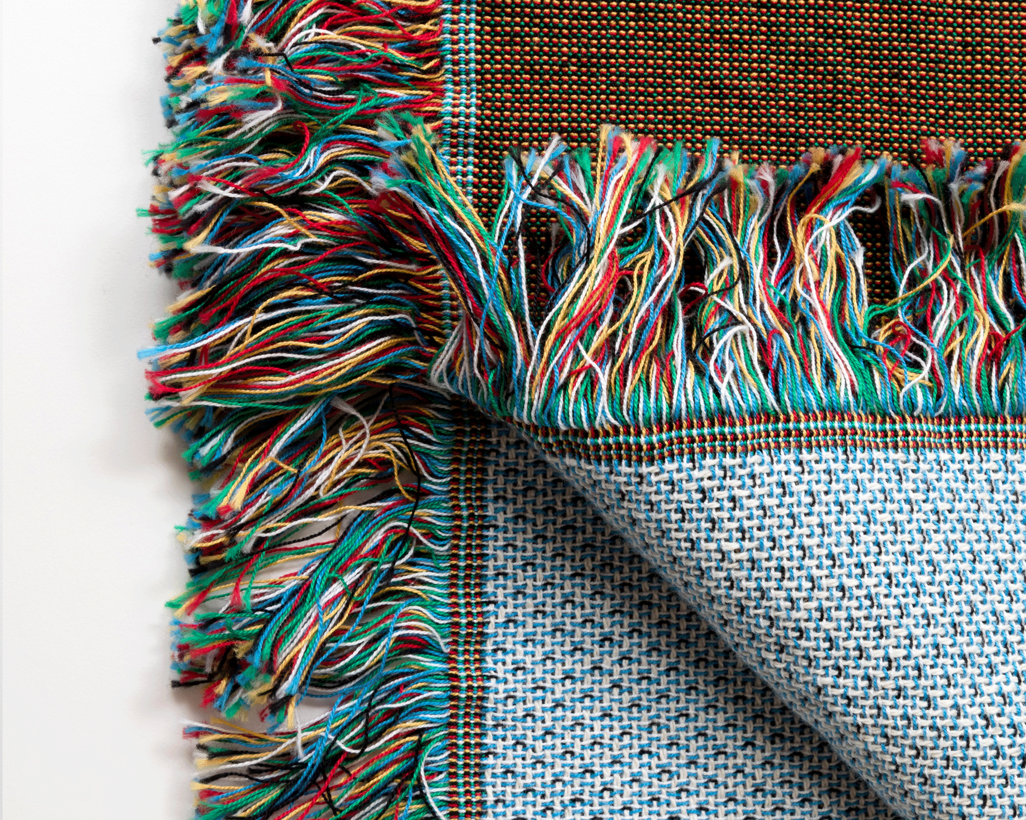 Jacquard woven throw with fringe. Woven by skilled artisan weavers in USA textile mills using 100% cotton.